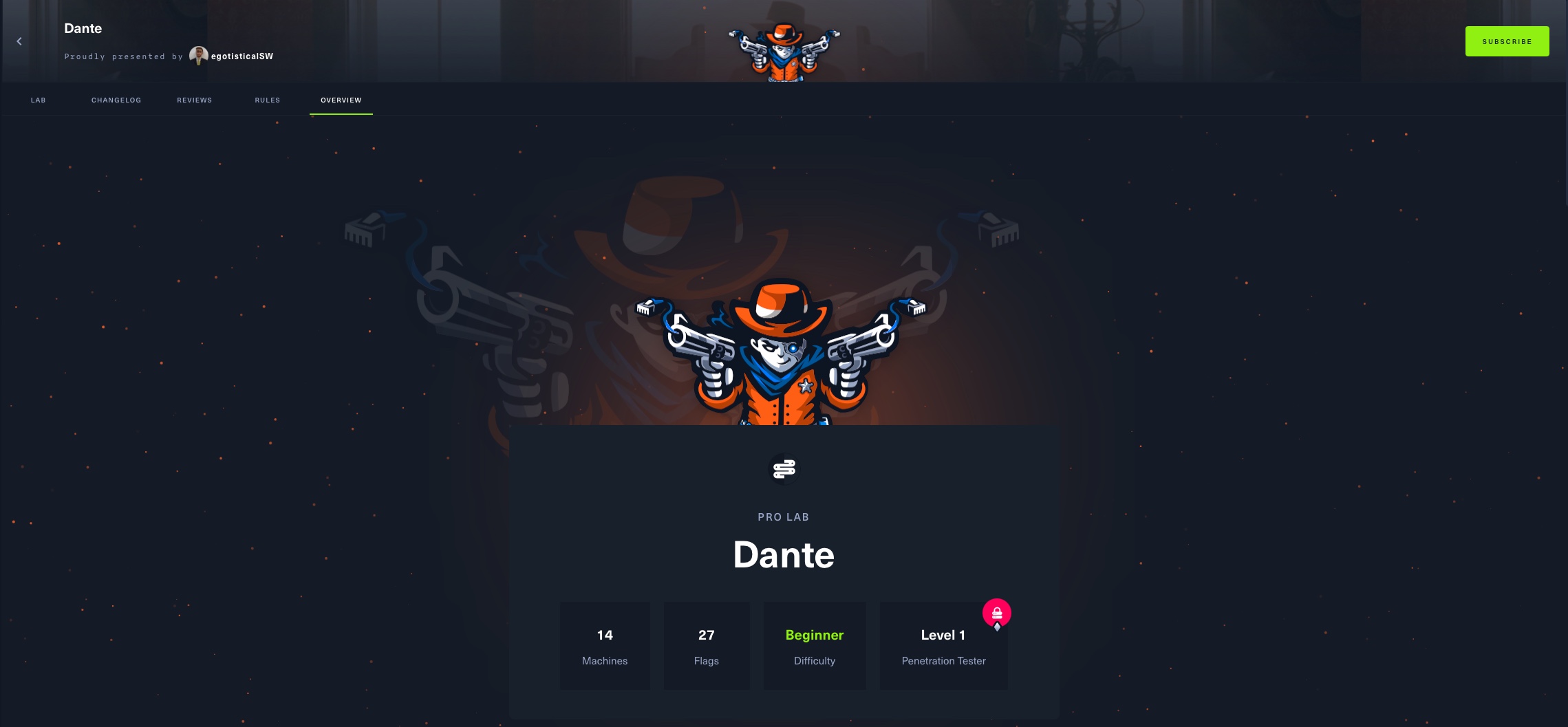 Le laboratoire Dante Pro est le plus accessible aux débutants à ce jour. Il s’adresse aux joueurs ayant déjà une certaine expérience des attaques réseau et web, ainsi qu’une bonne compréhension des concepts de base des réseaux et des méthodologies d’intrusion telles que l’analyse/l’énumération, le déplacement latéral, l’élévation de privilèges, la post-exploitation, etc.
