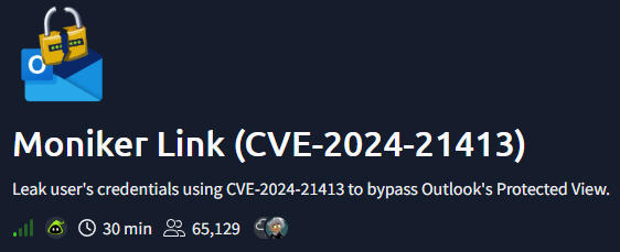 Room d’introduction aux vulnérabilités de type Moniker Link, avec un focus sur la CVE-2024-21413 affectant Microsoft Outlook.